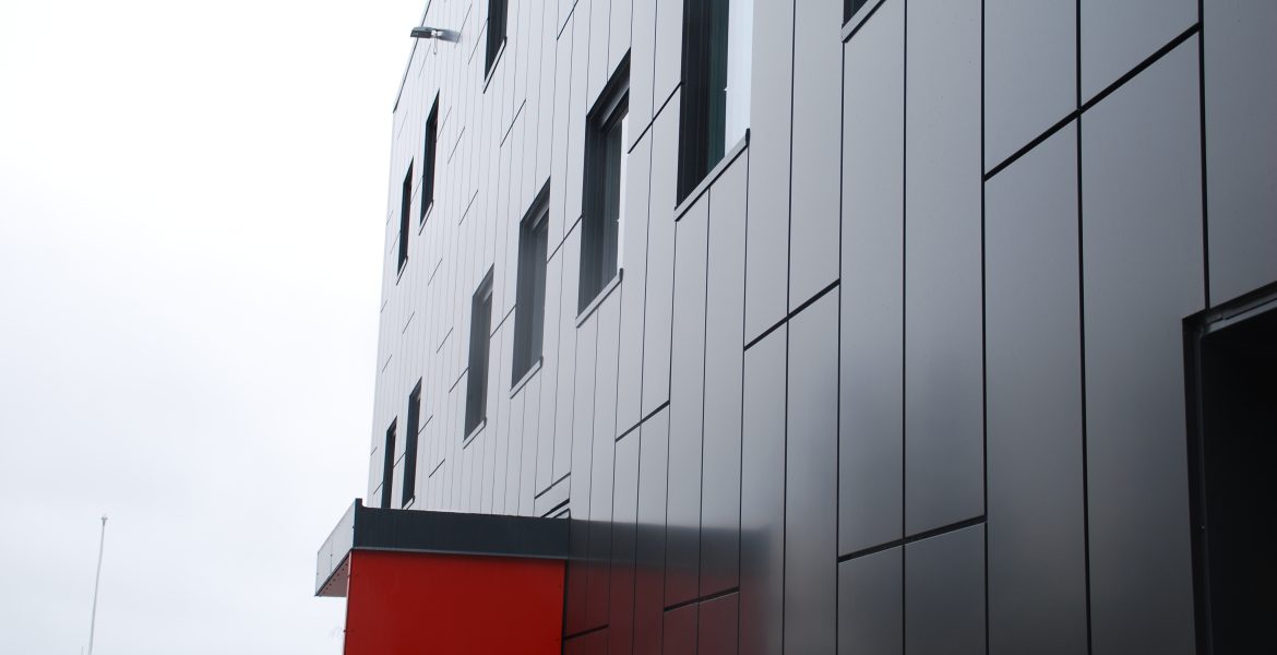 | Surface Area | Alunor kassetter, farge Dark Grey Metallic og sinusplater SP 42/160 fra Montana i farge RAL3020 |